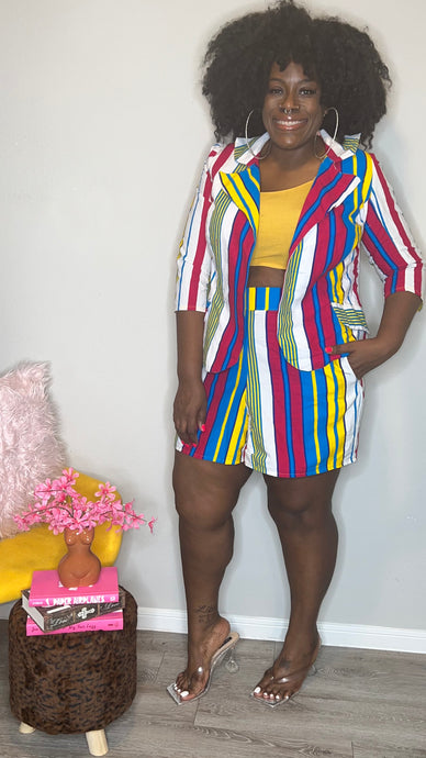 Bon Voyage Striped Button Down Top & Shorts Set (2X)