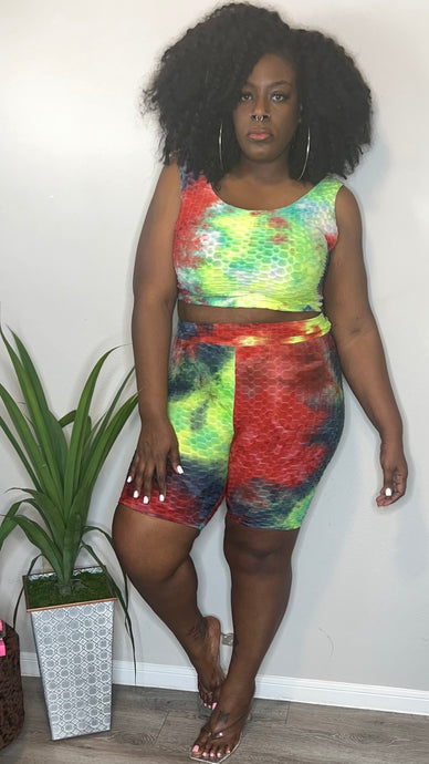 Tie Dye Honeycomb Legging Set - Neon Green Size 2X